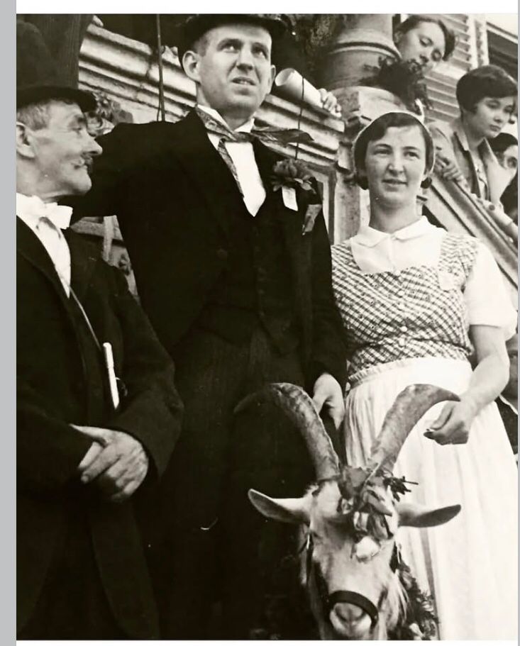 Info: Während des Krieges keine Übergabe durch ein Brautpaar. Der Bock wurde durch den jeweiligen Halter nach Deidesheim verbracht.