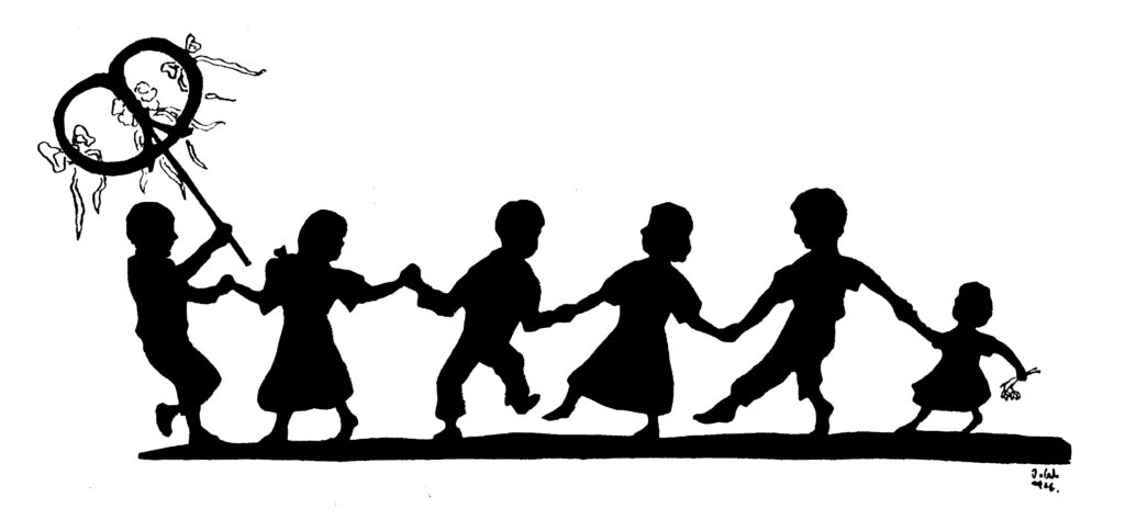 Zurück im Schulhof wird der Winter in Form eines Strohballens symbolisch verbrannt – „Ri, ra, ro, de Summerdach is do“ .